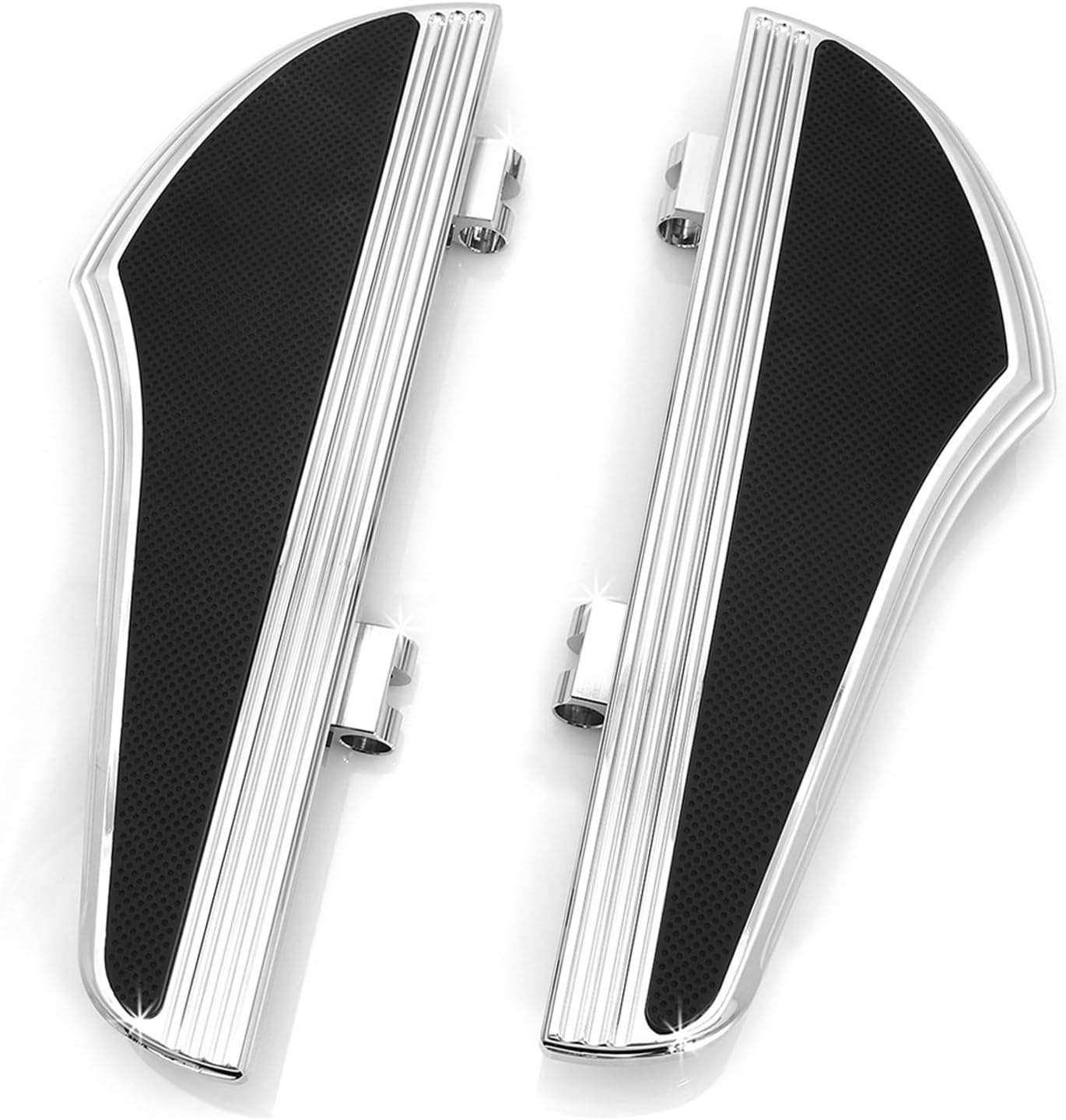 Fitment : 1980-2023 Touring street glide FLHX ,street glide special FLHXS and CVO Street Glide FLHXSE etc,;1980-2023 Road glide FLTR, FLTRX, road glide Special FLTRXS ,CVO Road Glide Custom FLTRXSE ,road glide ultra etc, ; 1980-2023 Electra glide Standard FLHT ; electra glide ultra etc, ; 1980-2023 Road king Special FLHRXS , road king FLHX etc, ;2000-2017 Softail Slim FLS , FXST , Deuce FXSTD , models2012-2016 Dyna Switchback FLD,2009-2013 Trike models. ( Installation on 2000-2017 Softail FLS, FLSS, FLSTFB, FLSTFBS and FLSTN models requires separate purchase of Jiffy Stand P/N 50087-07A. Not for use with Ergo Jiffy Stand P/N 50000091 or Jiffy Stand Extension Kit P/N 50233-00, 50000008 or 50000023.)Package Included:1 Pair Front Floorboards ( size in the photos )1 Pc large brake pedal coverInstructions: not included , easy install !Features:>> Style: Defiance style>> Machined from a solid piece of billet aluminum ;>> Adds exceptional style and comfort to your bike ;>> Chromed finish and features re-cut machined accent sections on the top and sides of the floorboards ;>> Includes all mounting hardware .