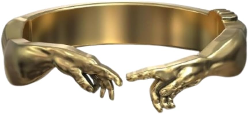 Adam Michelangelo Renaissance Hand God Giving Life Creation Unisex Ring 14K Gold Plated Adam Genesis Open Band Ring 925 Sterling Silver Handmade Personalized Kwanzaa Band Unique Jewelry. Our handmade jewelry is created through a detailed, artisan-led process that begins with original design sketches. These designs are carefully transformed into wax models and then cast in high-quality 925 Sterling Silver. Known for its durability and shine, sterling silver makes each piece long-lasting and hypoallergenic. After casting, our skilled craftsmen perform hand-finishing techniques like polishing, filing, and stone setting. Each item undergoes a thorough quality check to ensure beauty, comfort, and durability. The result is a unique, handcrafted piece of jewelry made with love and attention to every detail.